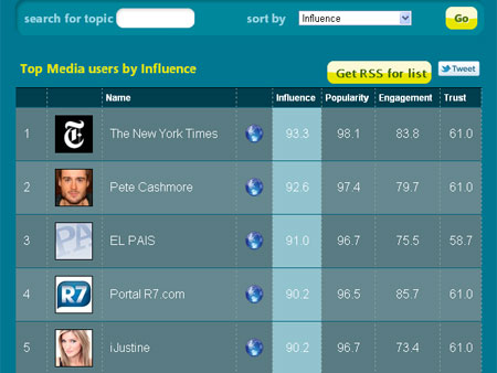 A pesquisa é feita pelo site TweetLevel, da empresa global de relações públicas Edelman.